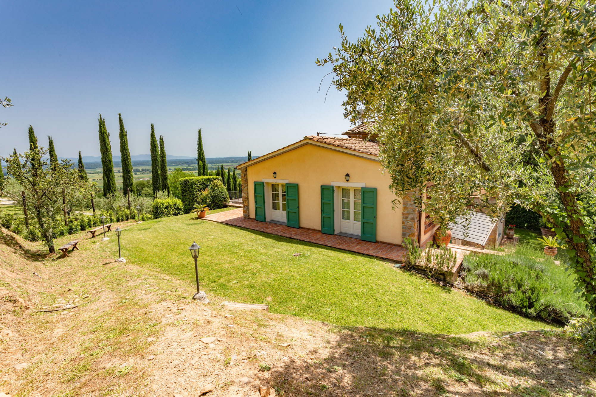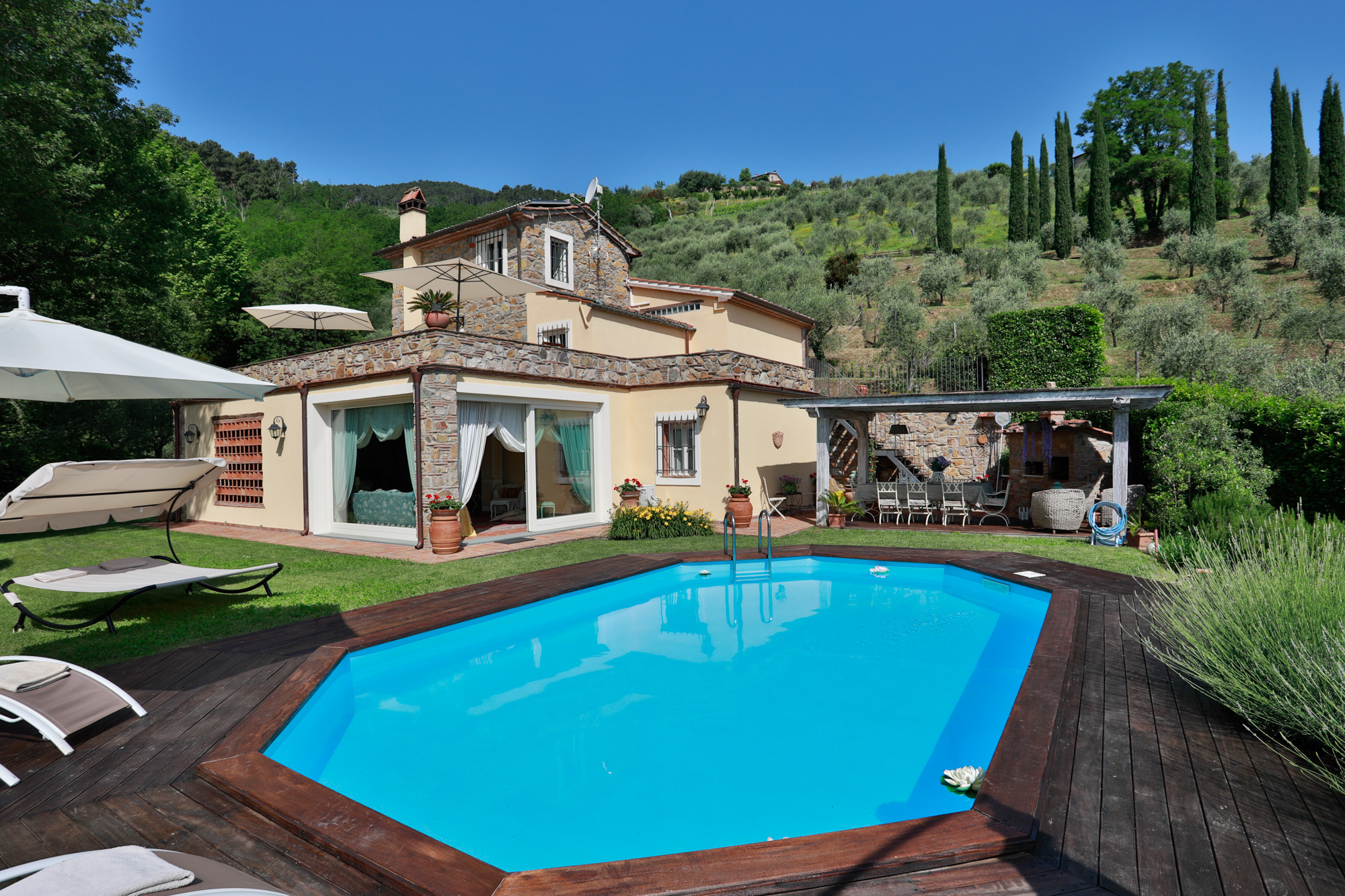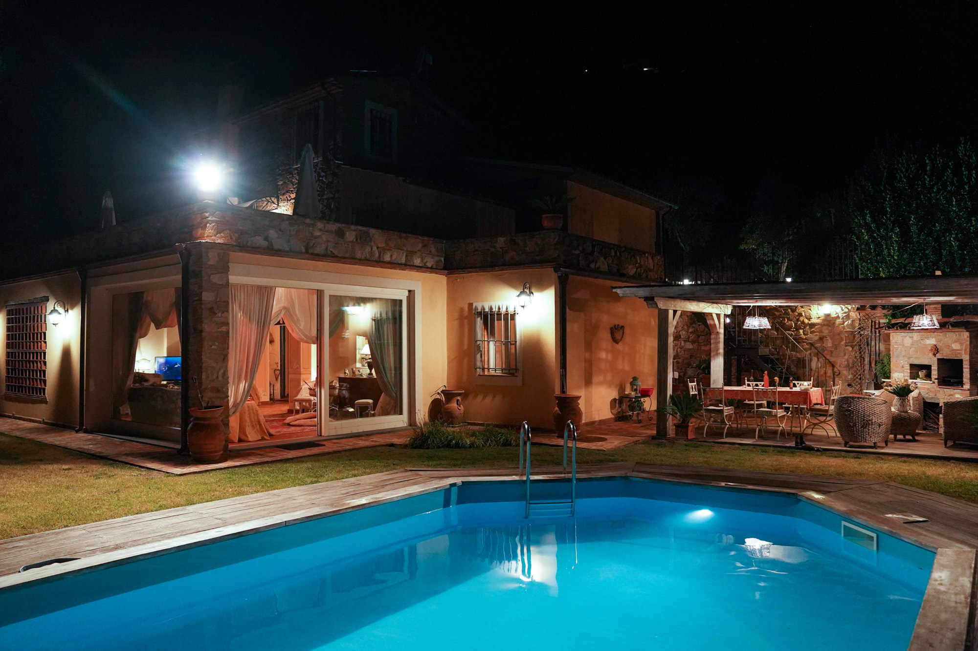 La piscina ottagonale panoramica si trova proprio di fronte alla casa completamente attrezzata di lettini e sedie. Circondato da un giardino con un grande gazebo coperto dove gli ospiti possono godere dene “al fresco” in un luogo rilassante con la piscina e il panorama.
